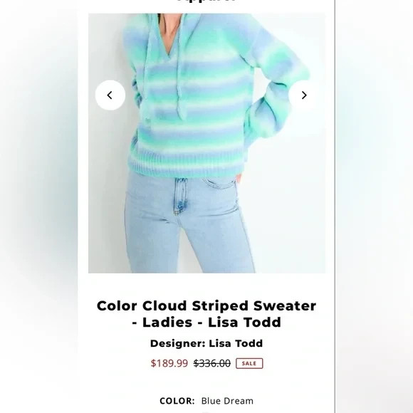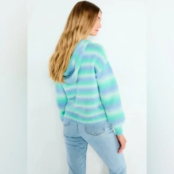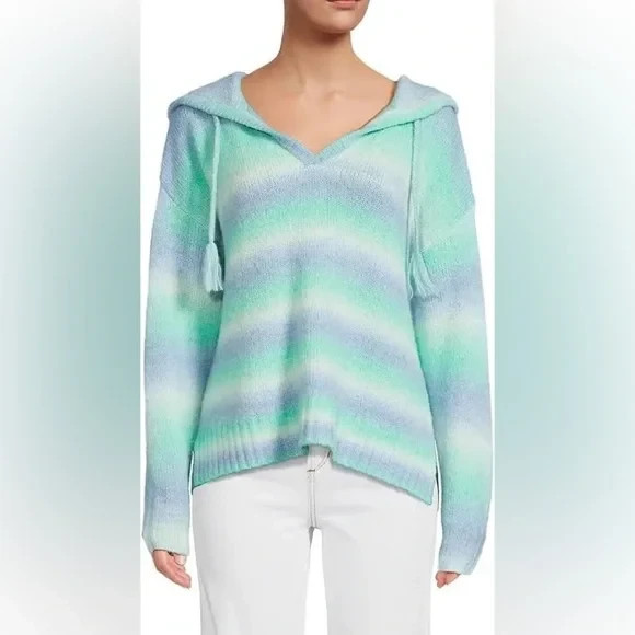 Lisa Todd Ladies Color Cloud Striped Sweater Hoodie New with tags! Size M Approx measurements garment laying flat Pot to pit 22 inches Shoulder to hem 23 inches Shoulders 22.5 inches Sleeve 19 inches Dreamy Lofty Lux blend hoodie with cozy cloud stripe. Relaxed fit. Attached drawstring hood with tassels Long sleeves Ribbed cuffs & hem Pullover style Dropped shoulders Acrylic, nylon, polyester, wool & spandex Hand wash Imported •No Returns No Holds No Trades