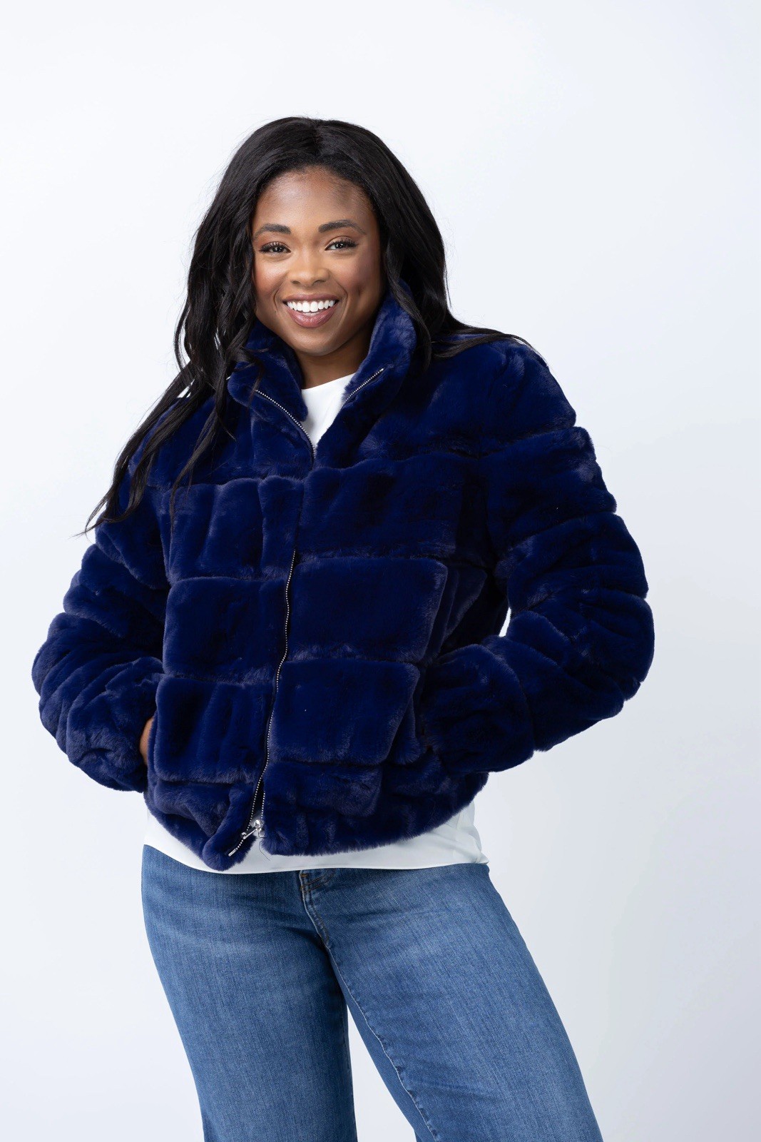 Love Token Navy Faux Fur Jacket New with tags, never worn!