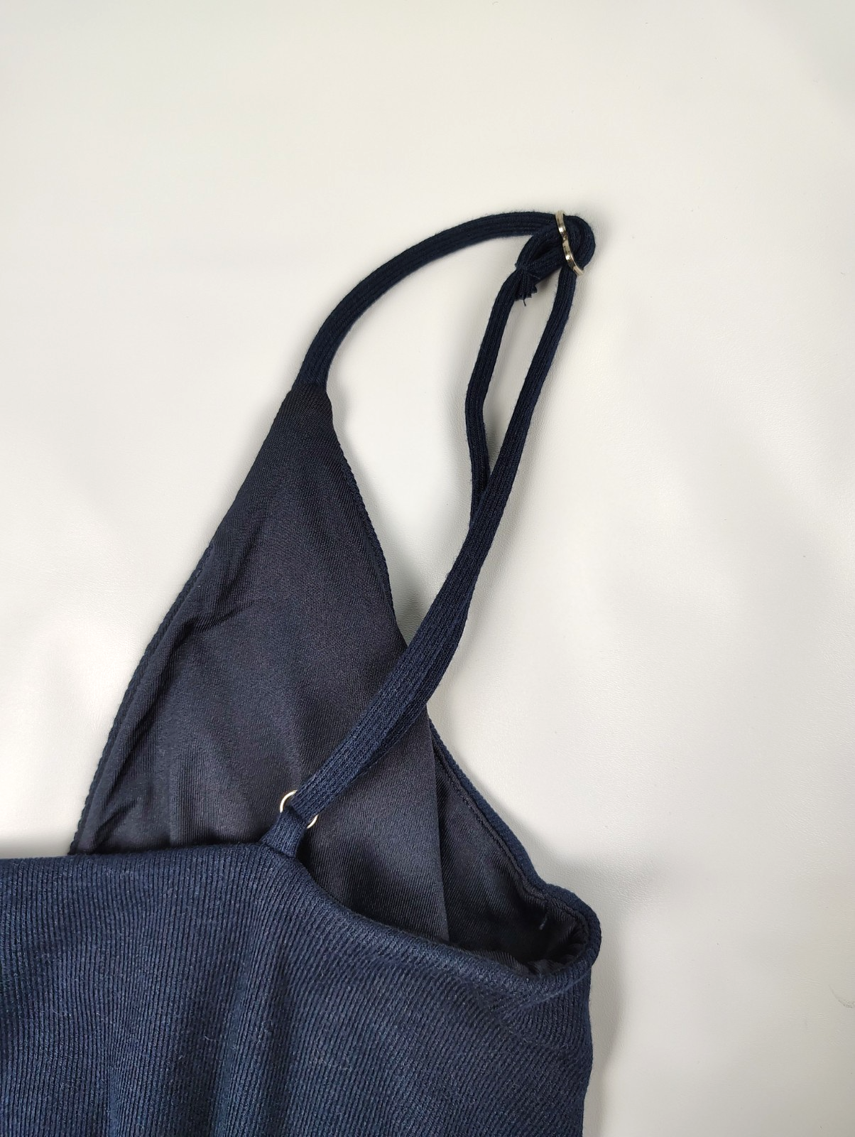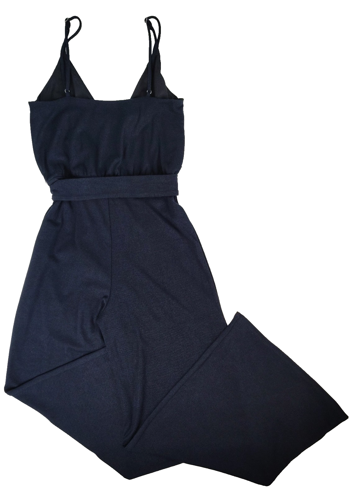 NWT Lovers & Friends Sleeveless Wide Leg Jumpsuit Navy Blue Knit S Tie Waist