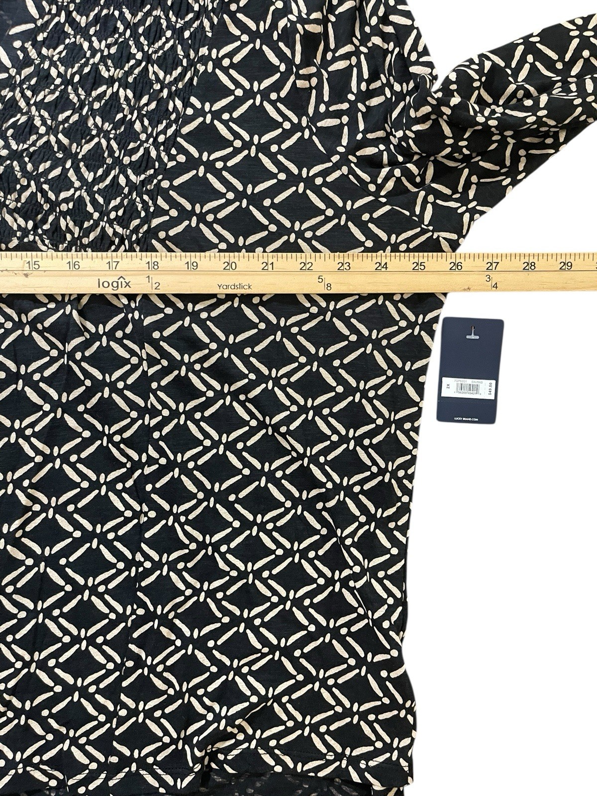 NWT Lucky Brand Top Women Sz 2X Cotton V-Neck Black Boho Casual Lightweight. Condition is New with tags. Shipped with USPS First Class.