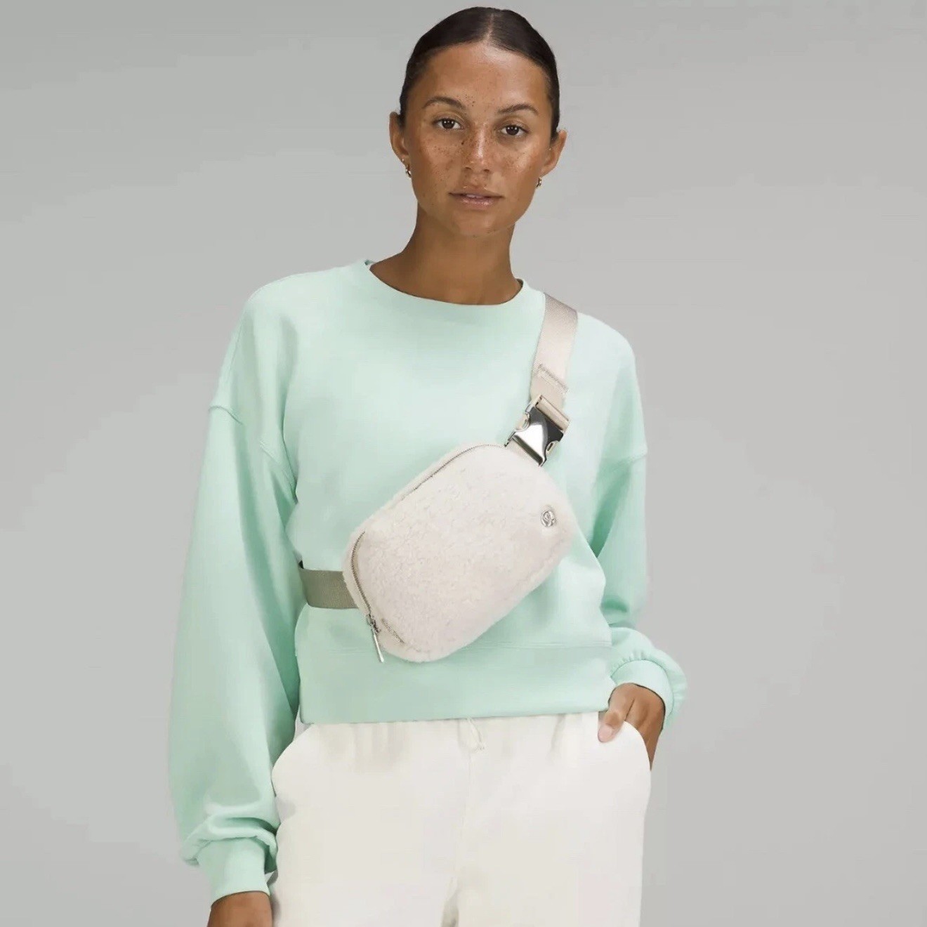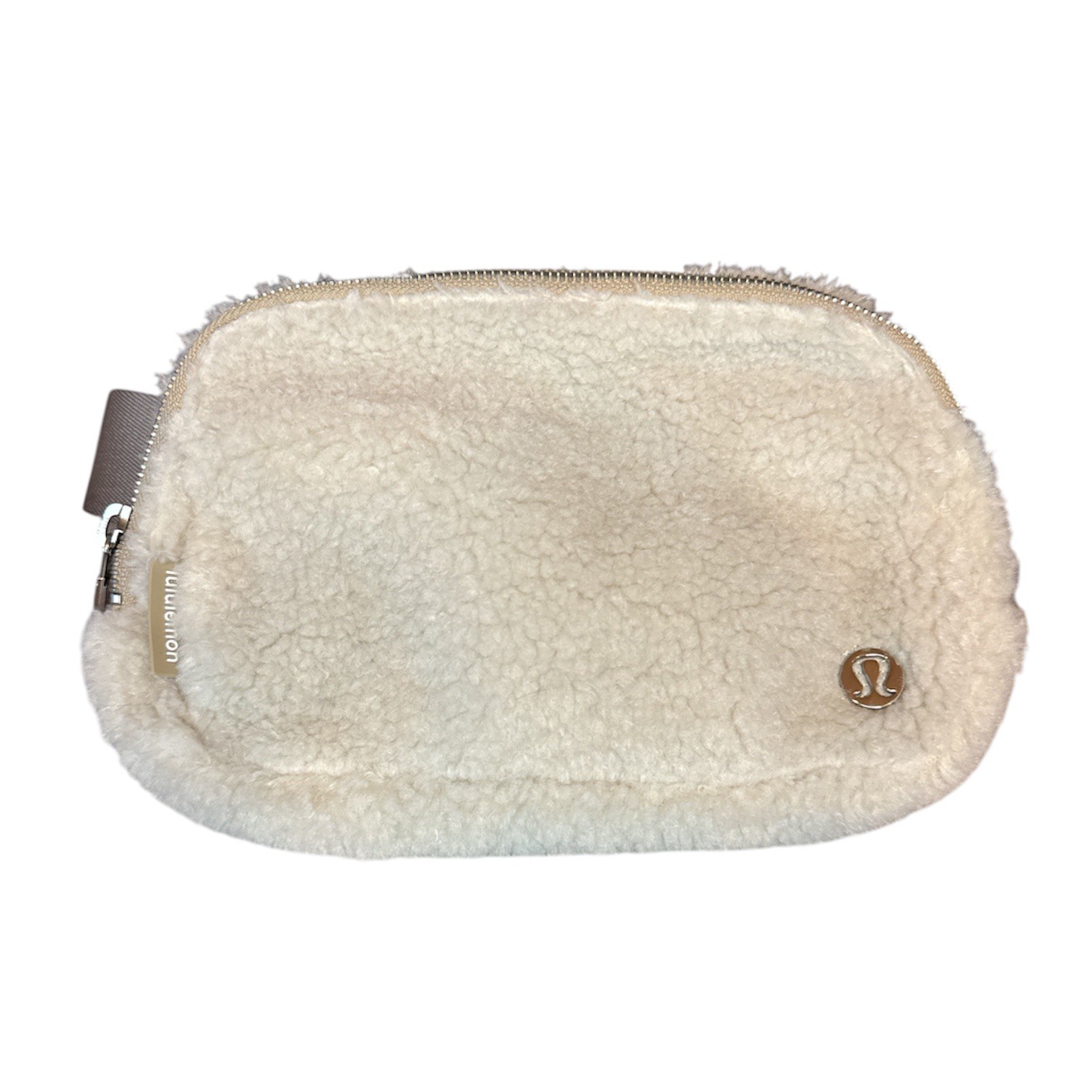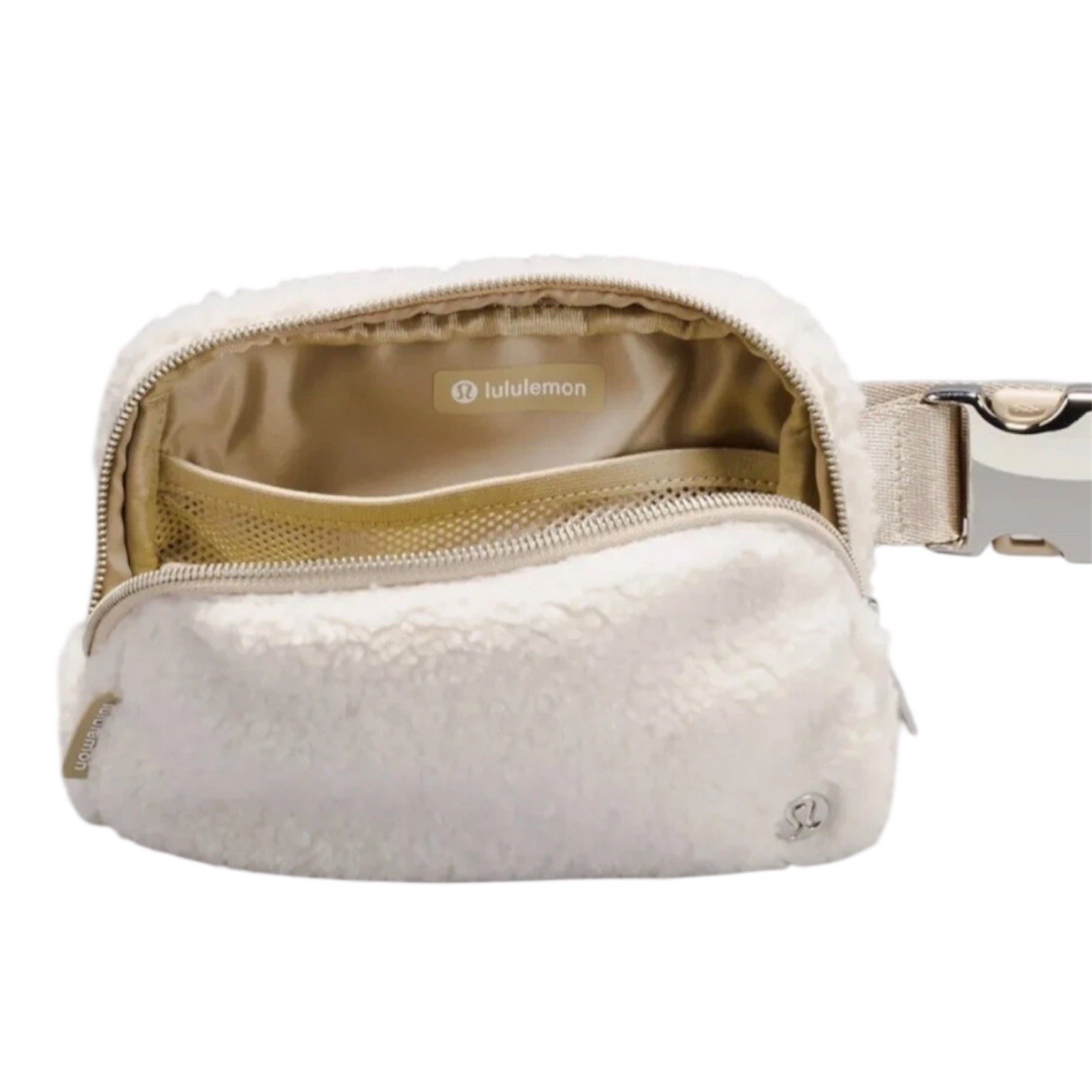 This is for a Brand New in Original Packaging and with Tags Authentic Lululemon Everywhere Fleece (Sherpa) Belt Bag in Natural Ivory/Trench. • 7.5"W x 5"H x 2"D • Adjustable strap • Zipper closure • Silver-tone hardware • Imported Sold out. Makes a great gift. Thank you for your interest. NWT Lululemon Everywhere Fleece Belt Bag in Natural Ivory Trench is a rare find for fans of the brand. The versatile bag features a solid design with a zip closure, gold hardware accents, and an adjustable strap for added convenience. Perfect for casual occasions, the bag is made with water repellant fleece material and has a 1L size capacity. The classic design and signature Lululemon logo make this belt bag a stylish and practical addition to any wardrobe. B8
