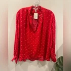 NWT Maje Blouse Red Floral Polka Dot Rouge Tie-Neck Long SZ 8 ✨✨❤️ NWT Maje Blouse Women's Size 8 Red Floral Polka Dot Rouge Tie-Neck Long Sleeve Tie-Neck Long Sleeve. Add a touch of elegance to your wardrobe with the Maje Lipia Tie-Neck Blouse. This blouse features a beautiful floral and polka dot pattern in a vibrant rouge red color. The long sleeves and tie closure make it perfect for both business and party/cocktail occasions. Crafted for women in size 8 with a regular fit, this blouse is a basic yet stylish addition to any wardrobe. The blouse is brand new with tags and is not vintage or handmade. Get this stunning blouse from Non-stretchy fabric Mid-weight fabric Hand wash or dry clean Imported
