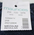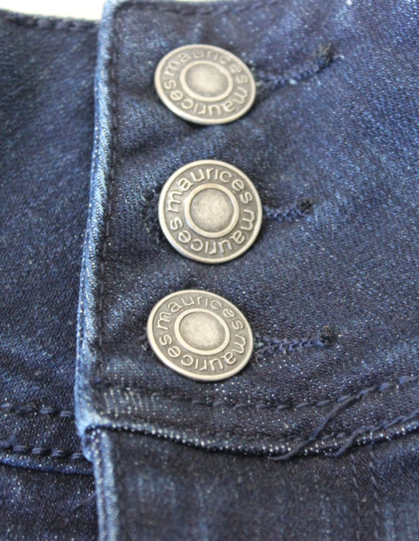 The product is a pair of Maurices Women's Jegging pants in size M Regular, featuring a dark blue high rise denim fabric with stretch for comfort and flexibility. The jeggings have a zip closure with 3 button accents and a 5-pocket design, making them practical and stylish. With a 27-inch inseam and a 28-inch waist size, these jeggings are perfect for the summer, fall, and spring seasons. The solid color and modern design make them versatile for various occasions, while the brand's quality construction ensures durability and a flattering fit.