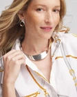 Product Details Style: 570379397 Upgrade your festive outerwear with this new Mixed Metals Twist Collar Necklace. Mix and match with like pieces from Chico's unforgettable jewelry collections. Bib necklace with obster claw clasp closure and extender. Dimensions: 16"+ 4" extender. 92% zinc, 5% steel, 2% brass, 1% cubic zirconia. Custom designed exclusively for Chico's. Handcrafted with nickel-free metal. Imported.