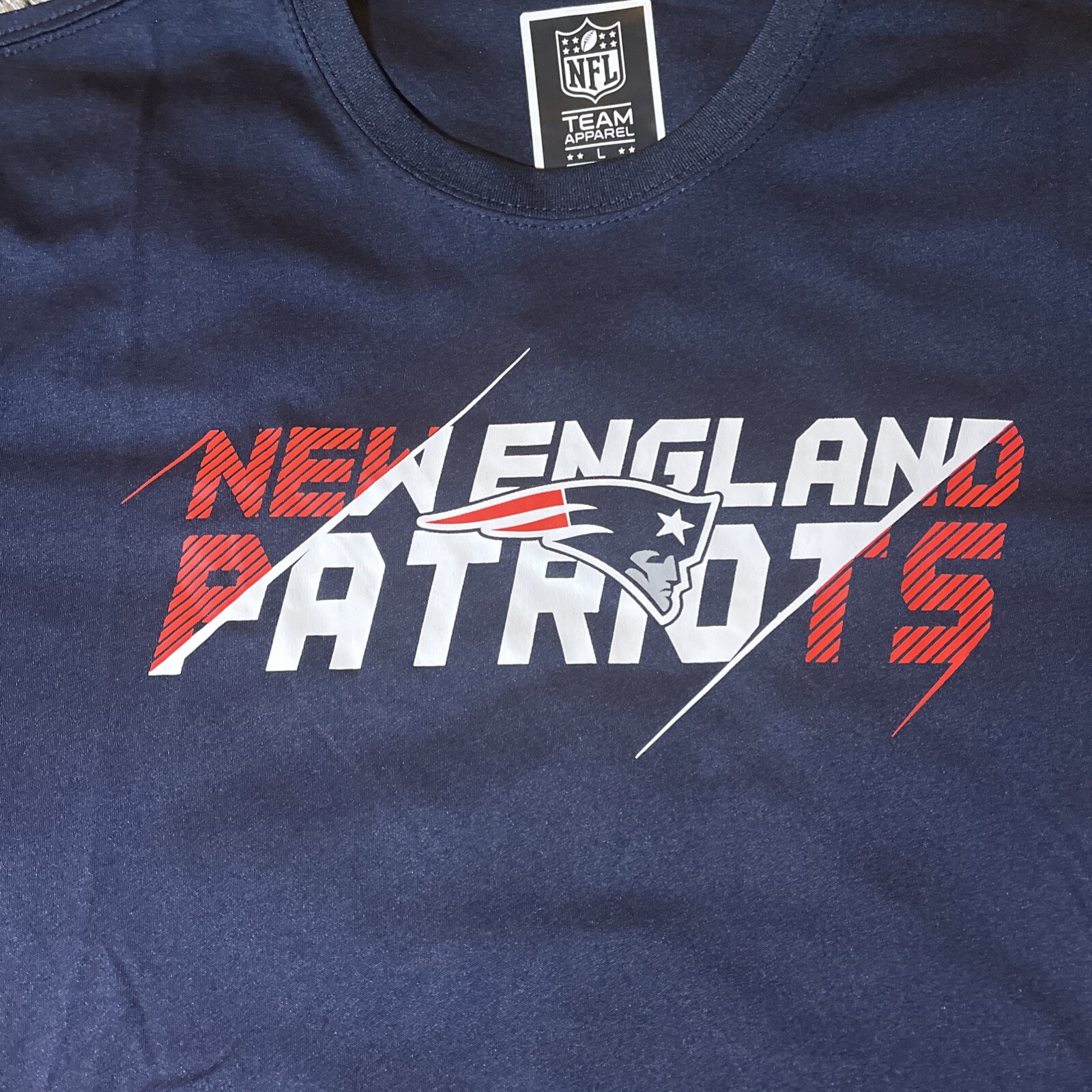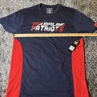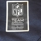 The product is a New England Patriots men's shirt in size Large, officially licensed by the National Football League. The shirt is blue with red accents and features the NFL Team Apparel branding. Made in China, this shirt is perfect for fans of the New England Patriots to show their support during the NFL regular season. It is a high-quality and authentic piece of fan apparel for football enthusiasts.