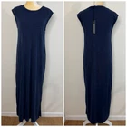 Condition: New with Tags with flaw. (Discoloration on hem. Please see pictures for exact conditions.) Brand: Nicole Miller Size: Medium Style: Sleeveless Modal Casual Mid Dress Color: Navy Blue Department: Women’s Material: 62% Modal, 38% Polyester Chest: Approx. 17.5” Waist: Approx. 18.0” Hips: Approx. 19.0” Total Length: Approx. 49.0” Features: -Pullover closure -Round neckline -Sleeveless -Stretchy modal fabric -Midi length with side-slit -Machine wash Please see measurements and pictures to be sure of fit. Size may change from previous wash. Chest is measured from armpit seam to armpit seam. Waist is measured from narrowest side seam to side seam. Length is measured from shoulder seam to the bottom hem. Sleeve is measured from top of sleeve to hem cuff. All measurements are approximate and measured flat across.