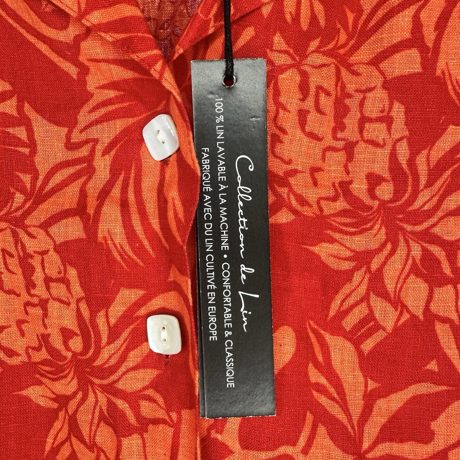 This top is absolutely gorgeous! The linen fabric is lightweight and breathable, perfect for summer. The floral print in red and orange is vibrant and eye-catching. The fit is true to size, and the collared neckline adds a polished touch. Great for dressing up or down—so versatile! Fast shipping and excellent seller communication make this a fantastic purchase. Highly recommend!
