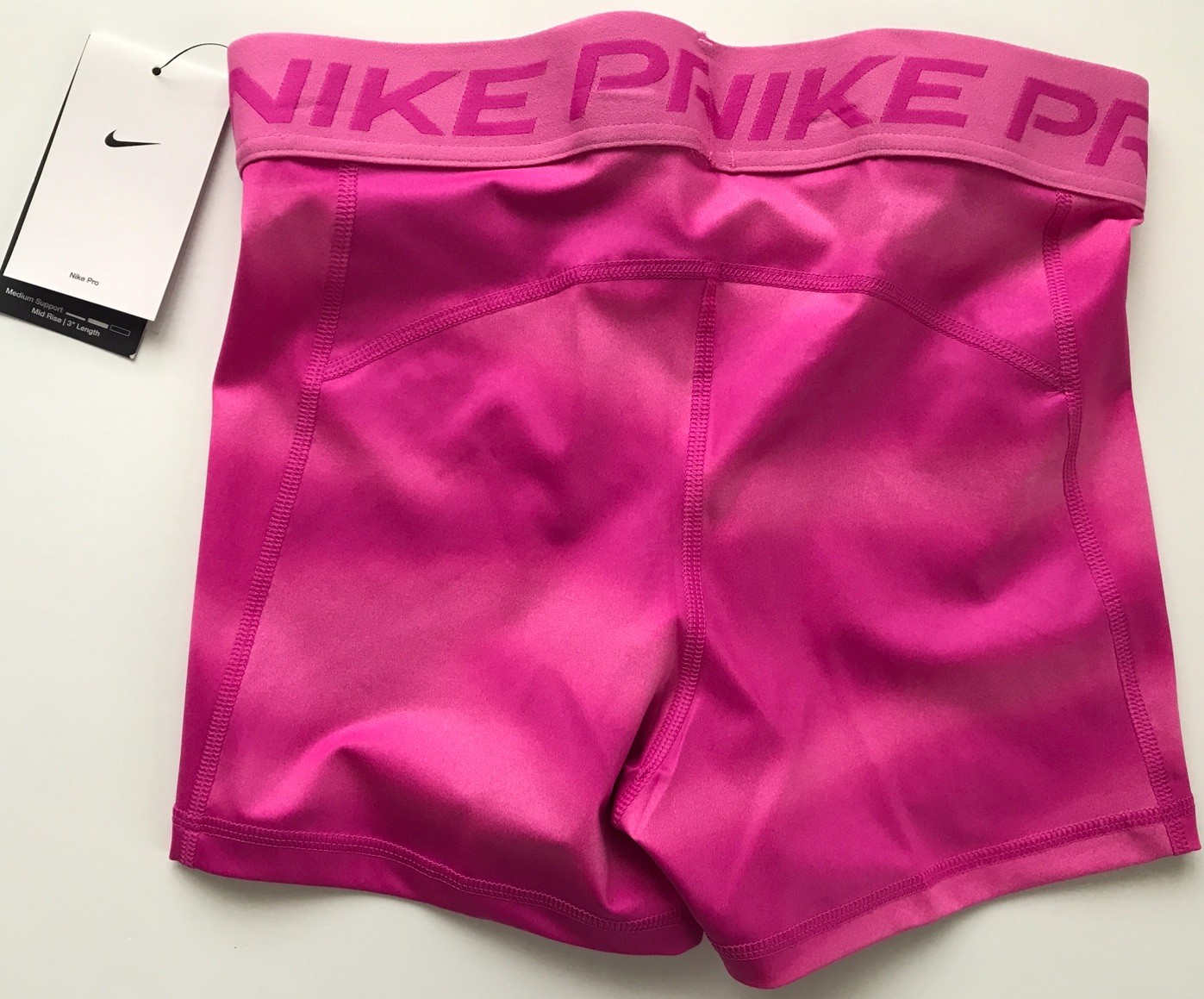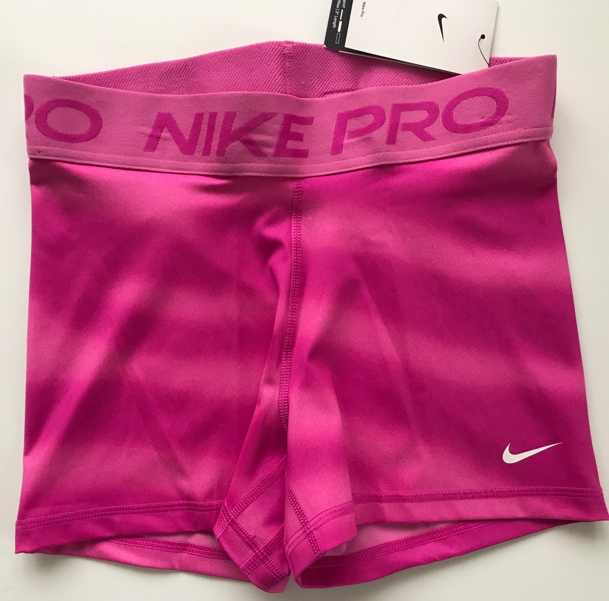 Nike Women's Pro 3” Shorts SUPPORTIVE AND STRETCHY. The Nike Pro Shorts are made with stretchy, sleek and supportive fabric that wicks sweat to help you stay dry and comfortable during your workout. Benefits Nike Dri-FIT technology helps you stay dry, comfortable and focused. A wide, mid-rise elastic waistband feels supportive around your core. Product Details New with tags. Color: Pink (The real color is in between those in stock photos and other photos taken on actual shorts. Darker pink than those in the first three pictures, and lighter than those in other pictures) Size: Women's XS Medium support Tight fit for a body-hugging feel 83% polyester/17% spandex Machine wash Style: IH7636-675 Made in Vietnam