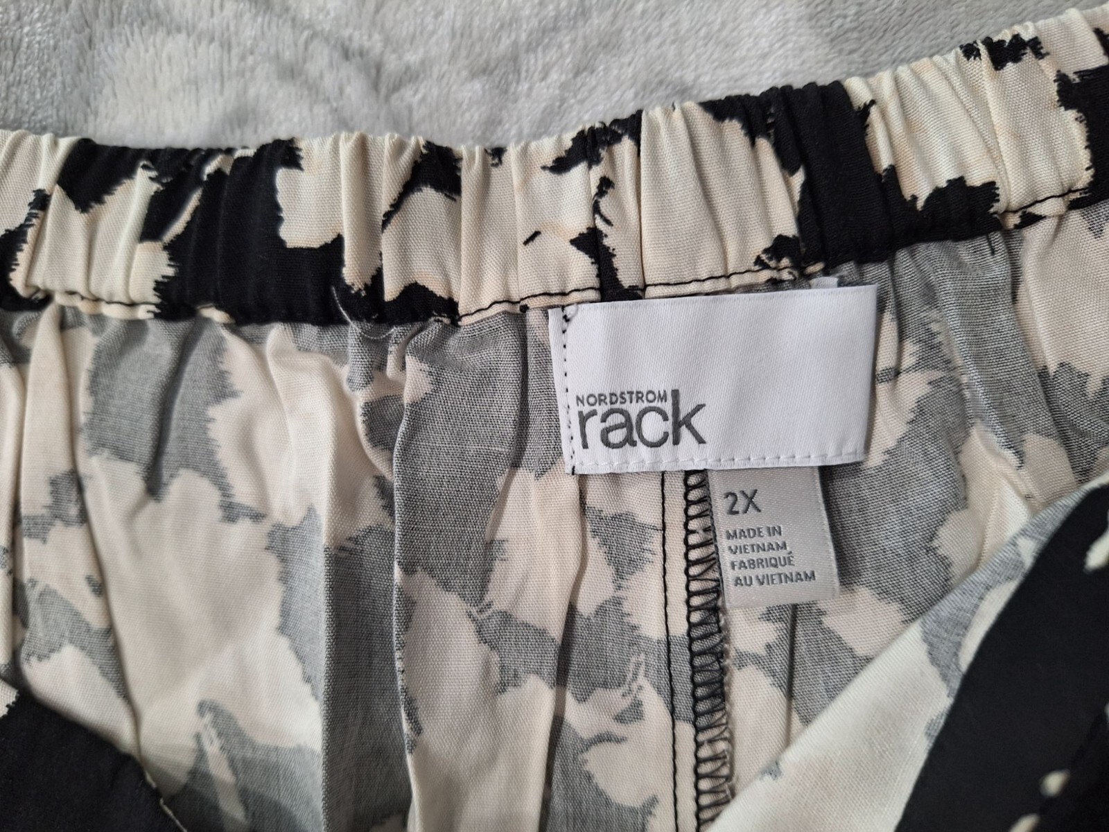 New with Tags! Size 2X Pull on wide leg pants sit high on the waist and have elastic in tur back if the band for a comfortable fit. Black and ivory floral pattern. Waist is 20 inches without stretching. Lightweight material- 100% Rayon with front slant pockets. Perfect for office, dinner, brunch, church. New with tags and gift able Features: • Nordstrom • NWT • Palazzo Pants • Cropped • 2X • Wide Leg Palazzo Pants • Floral Design Size: Womens 2X Condition: New With Tags