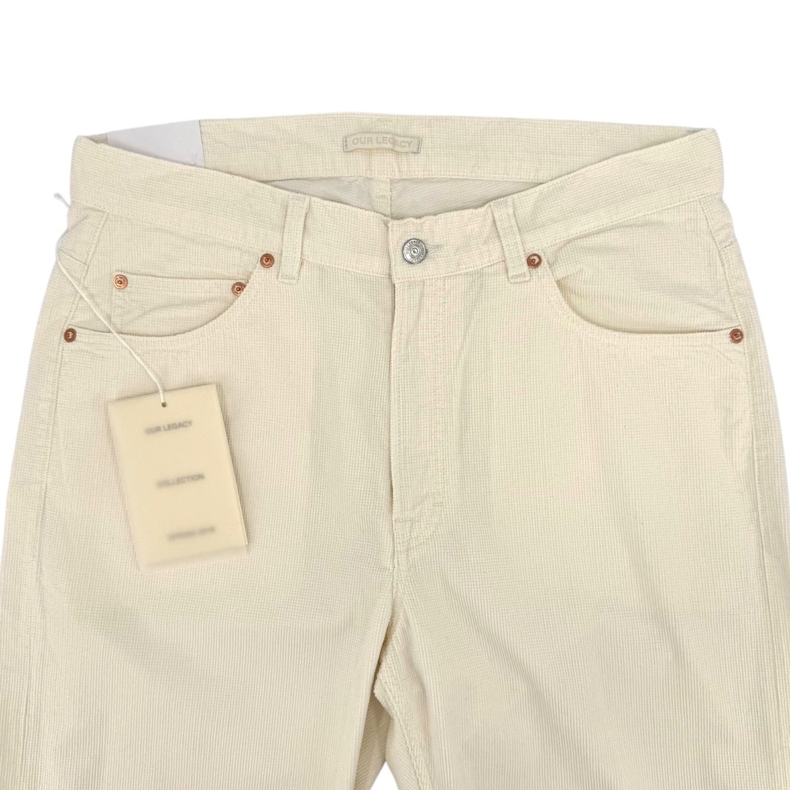 New with tags Small mark on back pocket - see last pic Eggshell cream 34x32 - see pics for approximate measurements Grid corduroy 100% cotton Made in Portugal NWT Our Legacy Men's Second Cut Eggshell Smile Grid Corduroy Pants 34x32
