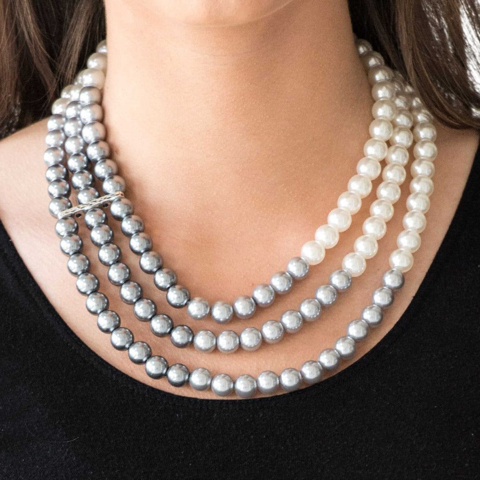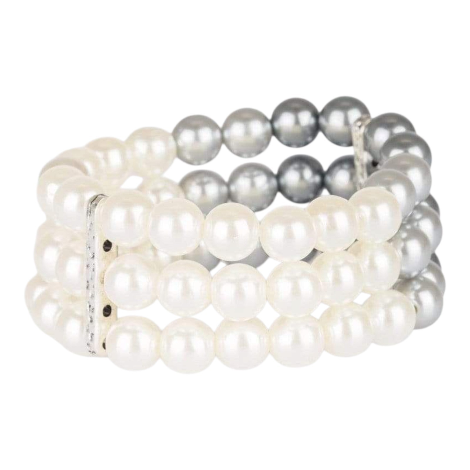 ✨️Paparazzi Faux Pearl Jewelry Set ✨️Includes: 3 strand adjustable necklace, 3 strand stretch bracelet, and earrings ✨️Times Square Starlet Necklace and Earrings Set: Joined together by a hammered silver fitting, strands of white, silver, and dark gray pearls cascade below the collar, creating an elegant ombre effect. Features an adjustable clasp closure. ✨️Central Park Celebrity Bracelet: Joined together by a hammered silver fitting, white, silver, and dark gray pearls are threaded along with stretchy bands, creating an elegant ombre effect around the wrist. ✨️Measurements shown in photo is from end to end with necklace open ✨️Beautiful white, gray, and black set ✨️New, never Worn but bracelet is missing tag ✨️Colors may appear different because of camera and/or screen quality ❤️From a smoke-free, pet-loving home but pets are kept away from my items. Please see all photos as this is the exact item(s) you will receive in the exact condition shown❤️