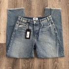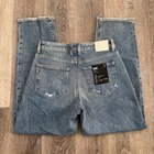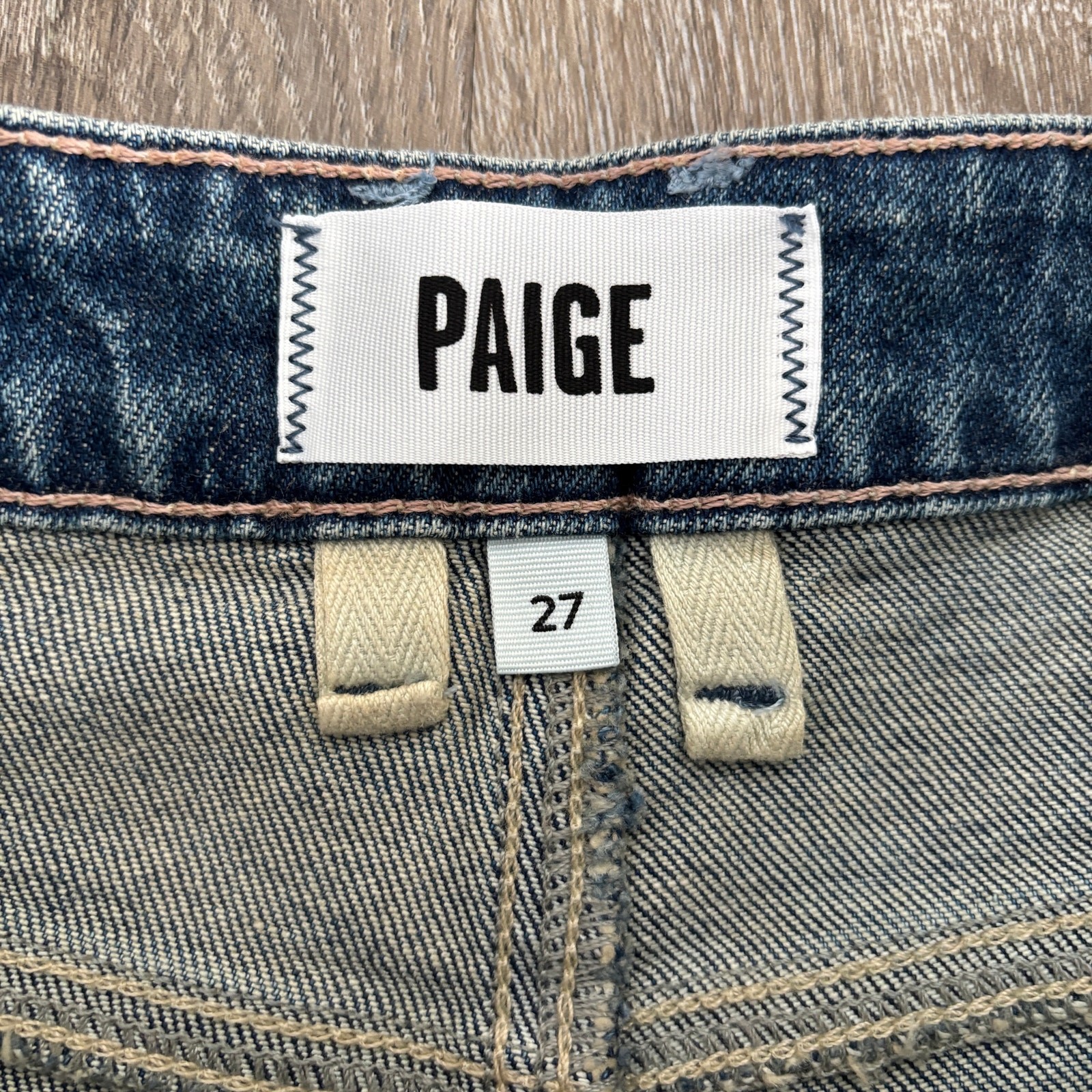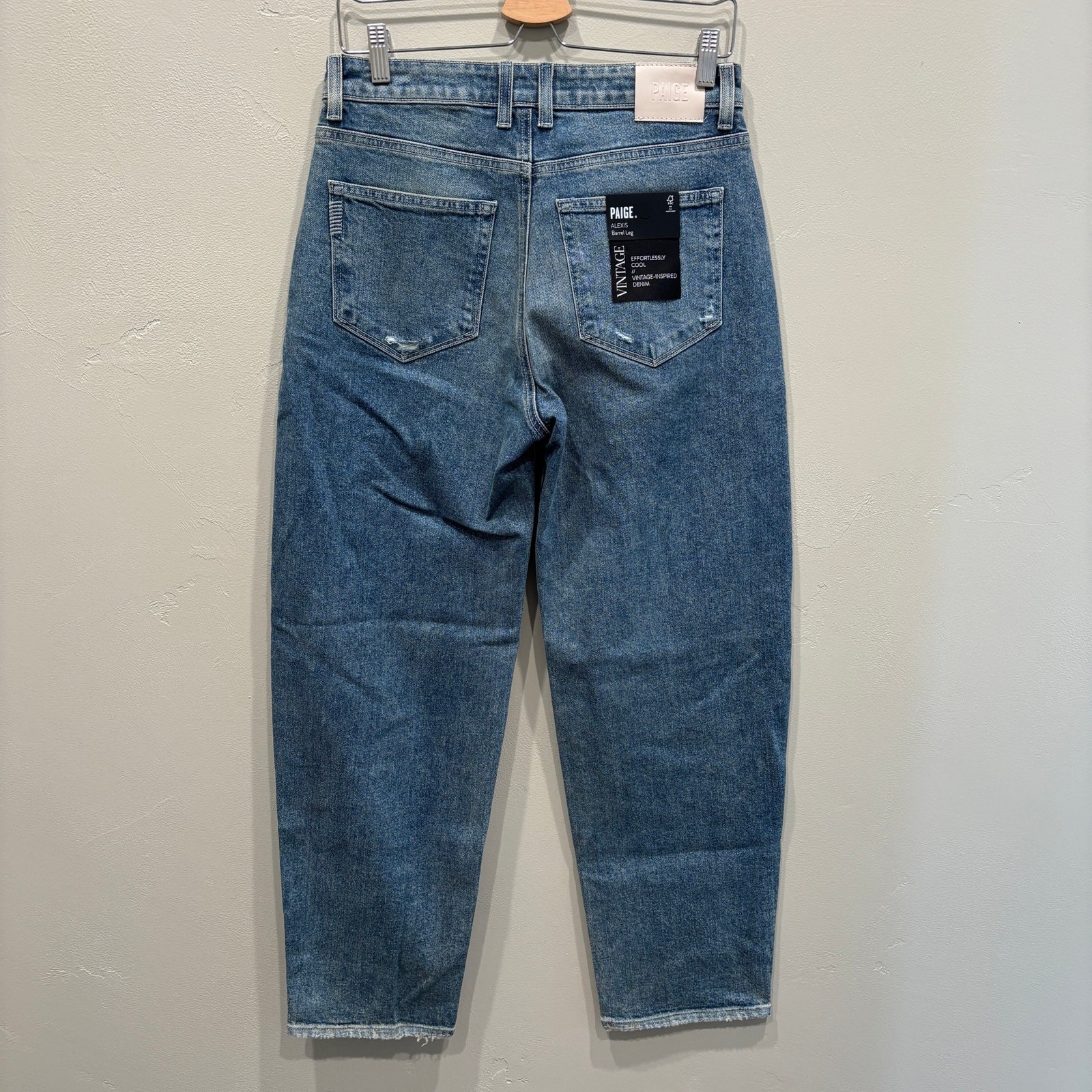 Paige Alexis High Waist Vintage Ankle Barrel Jeans in Cats Meow Distressed Blue Women’s New with tags No visible flaws Size: 27 Color: Cats Meow Distressed Blue *Color may differ in photos due to lighting. A barrel silhouette brings a current look to high-rise, button-fly jeans made from PAIGE VINTAGE stretch denim with hints of distressing. Button fly Five-pocket style Ankle length 99% cotton, 1% polyurethane Machine wash, line dry Measurements (laid flat across): Rise: 11" Inseam: 28" Waist (across): 15" Leg Opening (across): 7" Total Length: 39"