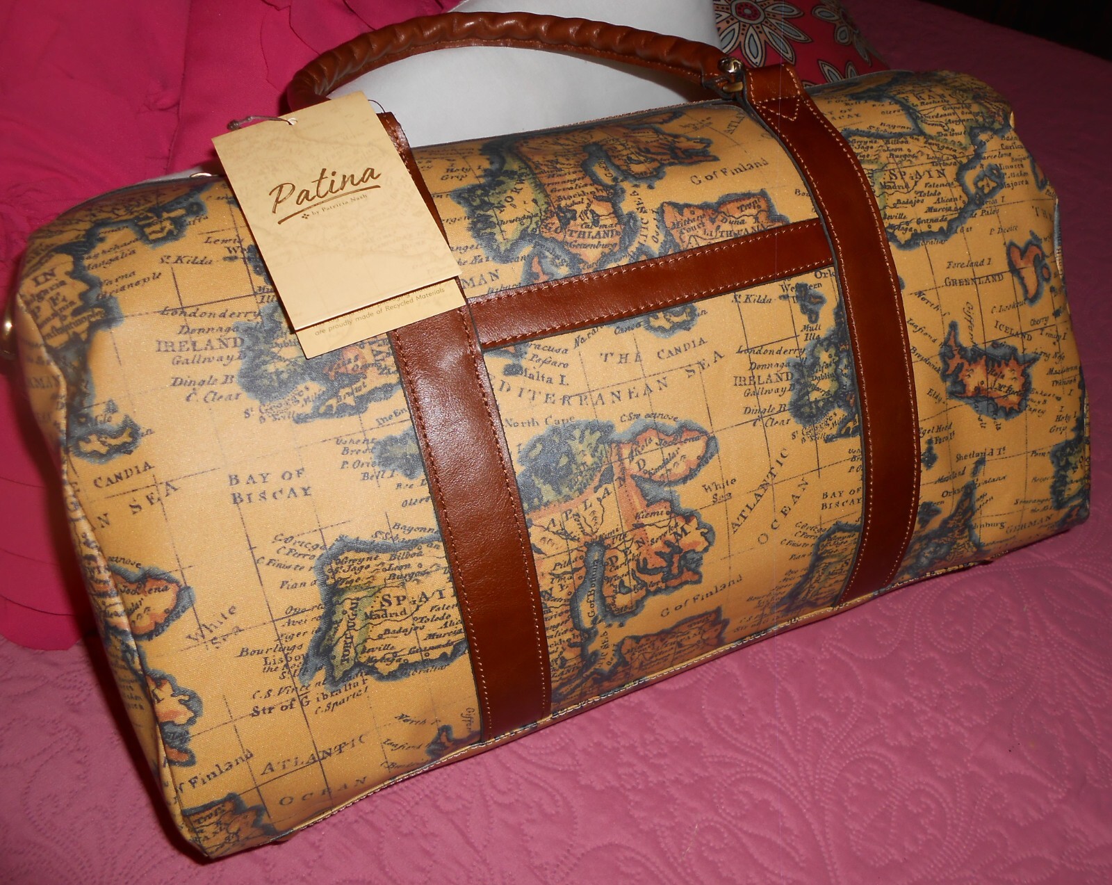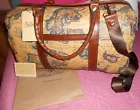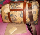 Amazing PATRICIA NASH weekender/travel bag Style: Milano European Map print Water-resistant, coated canvas body, removable and adjustable shoulder strap double handles, front and back slip pockets, leather logo plaque in lateral, metal feet, stud details, leather trim, burned edge finishing Tan-colored fully lined interior, zip pocket, two slip pockets European Map brushed brass tone hardware Measures approximately 19"L x 9"D x 11"H with 7-1/2" handles and a 10-1/2" to 24" strap drop trim 100% leather; lining 100% nylon Non-smoking house See my other items