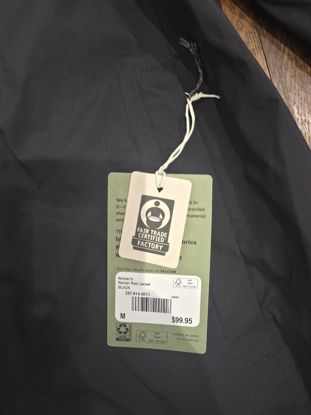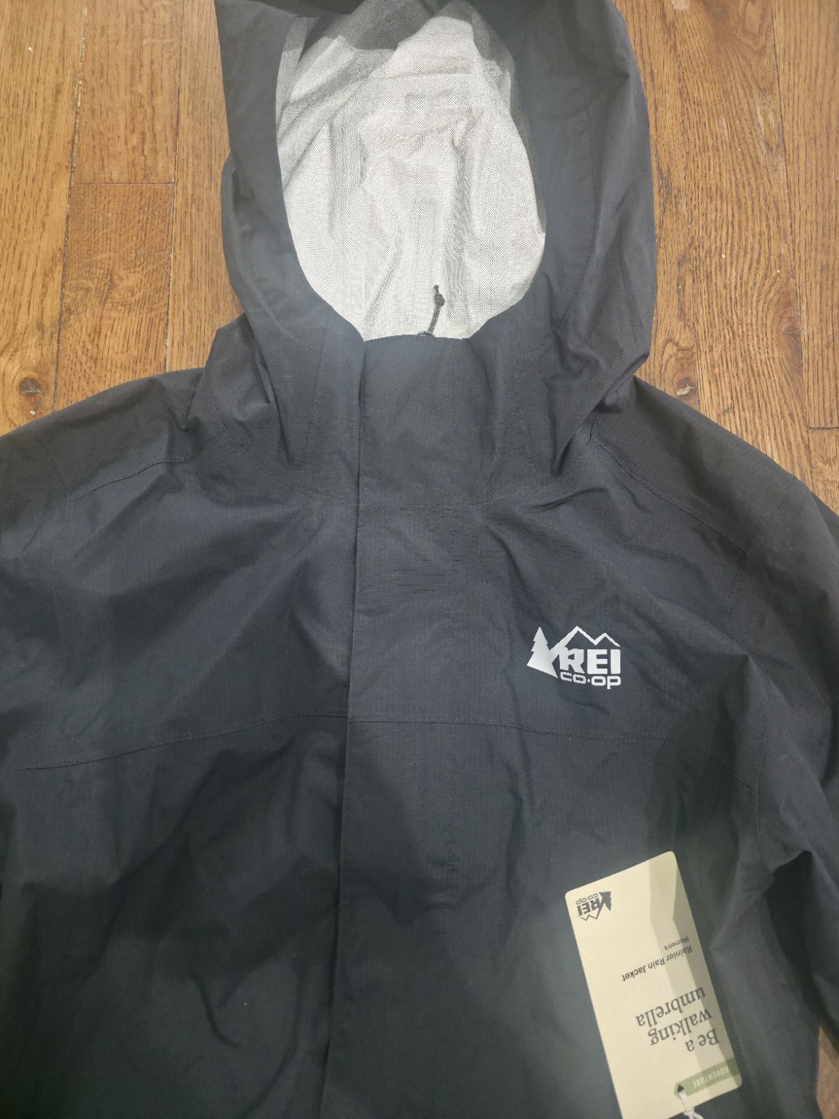 This NWT REI Coop Women's Zip Up Rainier Rain Jacket in Black Nylon is a stylish and practical outerwear option for women. Made from durable nylon, this jacket features a zip closure and a solid black color, making it versatile for various occasions such as travel and casual wear. The raincoat style adds a touch of functionality to the design, while the regular fit in size M ensures comfortable wear. Perfect for staying dry and fashionable in wet weather, this jacket is a reliable choice for any woman's wardrobe.
