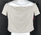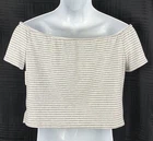 NWT SO Cropped Top Tee L Gray/Wht Stripe Off Shoulder Ruched Y2K 90s Chest 38 " (19" underarm seam to seam) Length 14 " Excellent Fashion Gem Fast shipping , same or next business day with tracking number for confirmation Thank you Questions? Please let me know I answer questions promptly Have a great day! WalkupandDeal offers great deals on previously loved items....... We inspect each garment for any flaws the item may have: missing buttons,holes,spots,tears or pilling. Our suppliers are carefully selected, so we only offer items that are in Great with minimal wear ,excellent,nearly new or New with tags condition. Information on each item can be found in the "item specifics" tab, including: Size, measurements,fabric content and care instructions. Our faculty is a non smoking environment and each item is laundered & steamed prior to listing and shipping. We strive for every customer to be happy with their items and as always offer a "return for any reason" policy...... ..... Thank you for shopping with us!!!