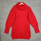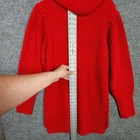 NWT SUGAR LIPS Red Cable Knit Long Bishop Sleeve Turtleneck Sweater Dress SIZE S -Please note, item measurements are approximate and in the photos. Please compare our measurement photos to your favorite garments to ensure fit. -Items are carefully inspected and sealed after photos. -Colors remain vivid, we store our items packaged and in a smoke-free environment. -If the item is pre-owned, it's cleaned per eBay standards. -Clothing items ship for $8.49, each additional item ships for $2 more. It should update in your cart. Measurements: Shoulder seam to shoulder seam: 17.75" Bust (underarm seam to underarm seam): 20" (40" Total) Center front length (not including collar): 31" Center back length (not including collar): 34" Sleeve length: 28" Sleeve opening: 4.25: (8.5" Total) Material: 77% Acrylic, 20% Polyamide, 3% Polyester Care: Hand wash cold, tumble dry low Color: Red