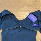 New with tags, this dress is a beautiful deep red color with a gold zipper in the back. It has a lined top and is excellent quality. Please reach out with any questions.