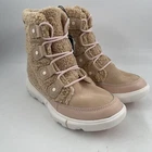 BRAND NEW WITH TAGS Women’s Size 7 1/2 & 8 *Mixed sizes; left foot size 7 1/2; right foot size 8; priced accordingly Sorel Women’s Explorer II Joan Cozy Light Tan & Sea Salt White Sherpa Boots. Please see photos for details as they are part of the description Step out in style & comfort in the Sorel Explorer II Joan Cozy Boots in Light Tan & Sea Salt White in size 7.5. These ankle boots feature a lace-up closure, making them ideal for both business & casual outings. The Sherpa upper material and cushioned insole provide comfort & warmth during the winter season. These Sorel boots come from the product line Sorel Joan & they boast a warm 200g insulation that makes them perfect for winter. The features of these boots include lining, waterproof, cushioned & comfort which ensure that your feet stay comfortable and warm while you are outdoors. Brand new. No original box. Carefully packaged and shipped same/next business day Please feel free to ask questions All items come from a smoke-free/pet friendly environment Please make sure to follow me. I list new inventory daily SH4259/025PE-TS