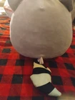 This is a 2021 Kellytoy Squishmallows plush of Max the Raccoon. Max is a medium-sized (16”) gray raccoon with a rainbow belly and ears. He is part of the Squishmallows character family and is recommended for ages 3 and up. Max is washable and suitable for various age levels, making him a cuddly and colorful addition to any collection.