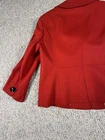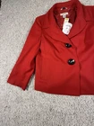 This New With Tags Talbots Women's Blazer in size 4 is a stylish and versatile career jacket made of wool in a bold red color. The blazer features a classic 2-button closure, lined pockets, and a mid-length cut, making it suitable for casual, formal, and business occasions. The long sleeves and regular fit ensure comfort and a sleek silhouette, while the polyester lining adds a touch of luxury to the jacket. Perfect for adding a pop of color to your professional wardrobe, this Talbots blazer is a timeless piece from a reputable brand known for quality and style. 4226