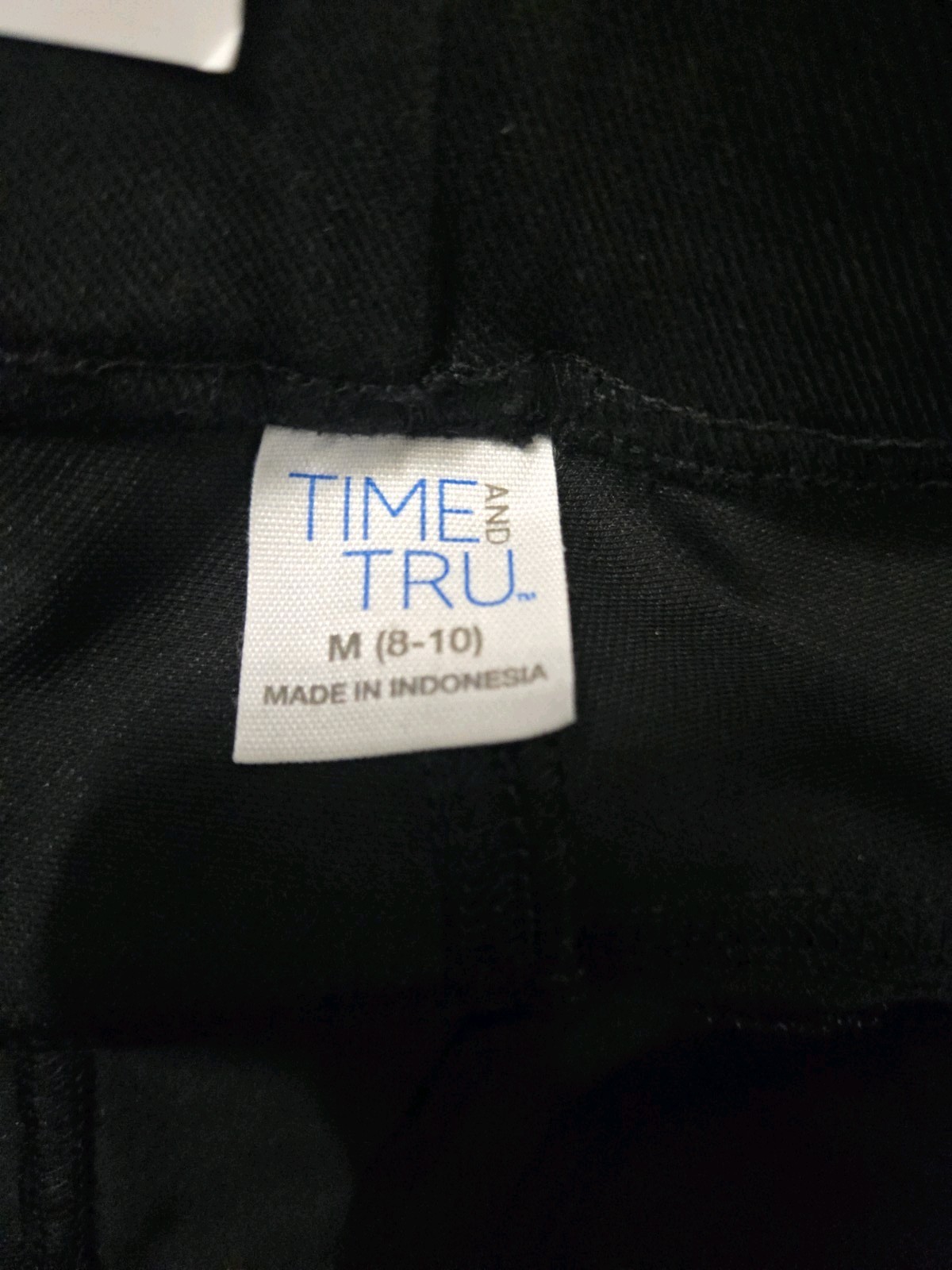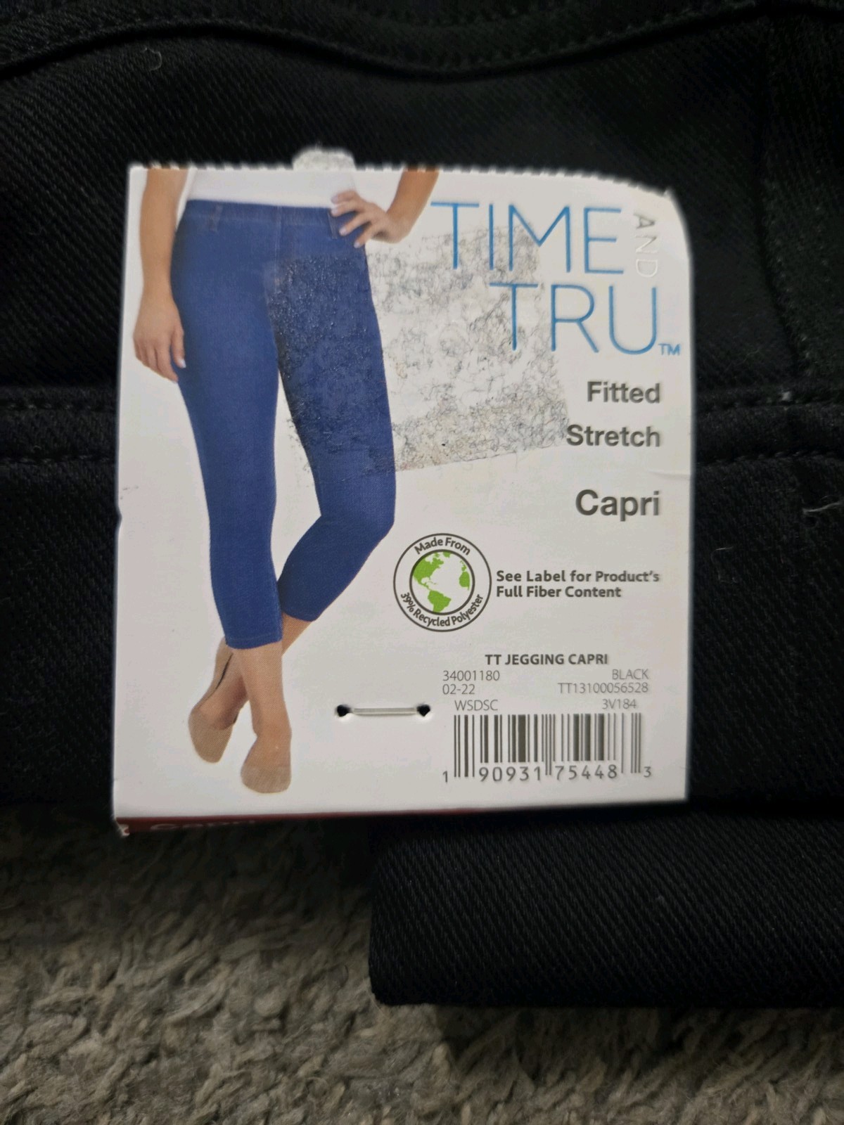 The NWT Time & Tru Juniors Capri Jegging in Black is a stylish and comfortable option for young women. These pull-on pants feature a stretch material for added flexibility, making them perfect for casual occasions. With a flat front and skinny leg style, these capri pants are ideal for the warmer seasons of summer, fall, and spring. Easy to care for with machine washable polyester material, these jeggings are a versatile addition to any wardrobe.