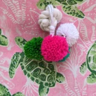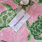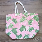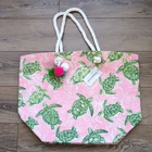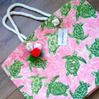 New with Tags! Tommy Bahama collectible tote shoulder bag. 100% cotton. Pink seaweed and green sea turtle design. Rope handles with multi colored pom pom charms. Height: Approx. 27 inches Length: Approx. 21 inches Also has bottom gusset that fold flat when filled. Condition: New with tags.