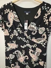 This NWT Tommy Hilfiger Liquid Knit High Low Paisley Print Dress in size 10 features a flattering fit & flare style with flutter sleeves and a V-neckline. Made from a comfortable and stretchy polyester and spandex blend, this knee-length dress is perfect for various occasions such as travel, parties, or casual outings. The colorful paisley print adds a pop of personality to your wardrobe, while the ruffle accents give it a stylish touch. Easy to care for with machine washable instructions, this dress is a versatile and fashionable choice for the summer, fall, and spring seasons. New with tags 95% Polyester, 5%Spandex Machine Wash Cold Stretch Super cute and elegant High-quality Well made Gorgeous dress Please see photos for measurements and details :)