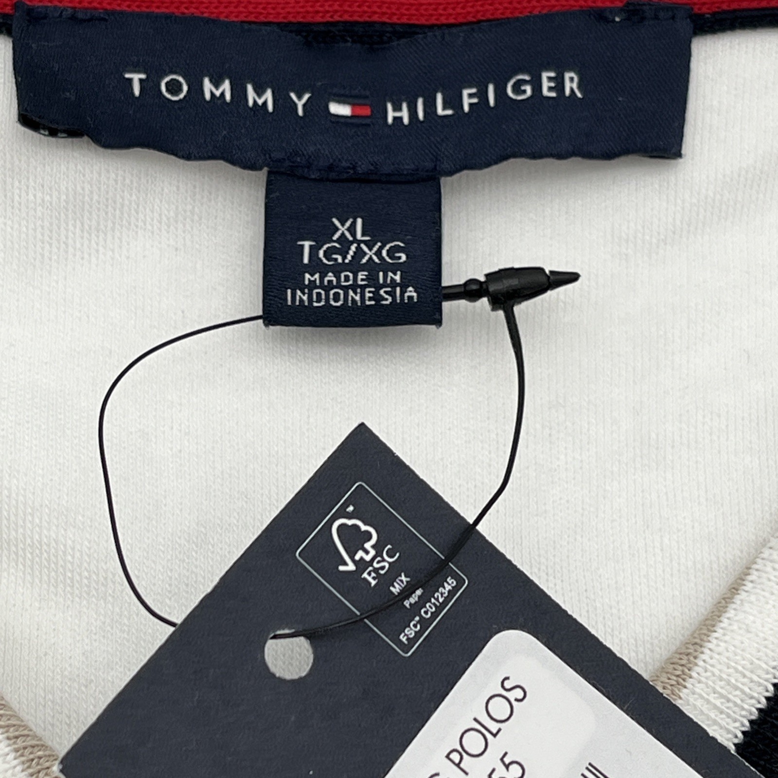 NWT Tommy Hilfiger Men's XL Stripe Tipping Wicking Long Sleeve White Polo NEW