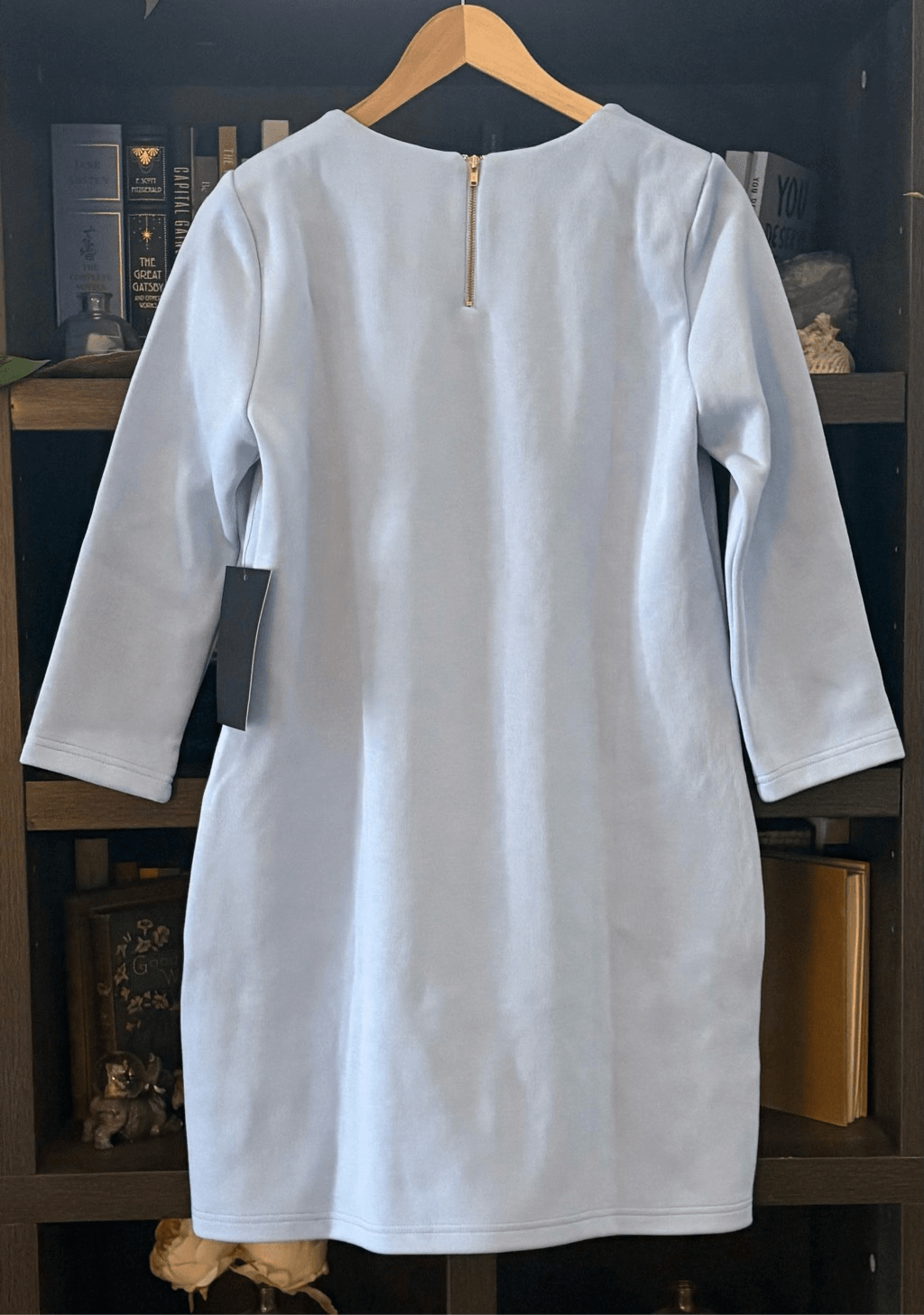 NWT Tuckernuck Light Blue Francoise Mod Knit 3/4 Sleeve Mini Dress Medium $228 New with tags $228 MSRP Size medium Pit to pit is about 20” Shoulder to hem is about 34.5” All measurements are taken hanging Please ask all questions before purchase