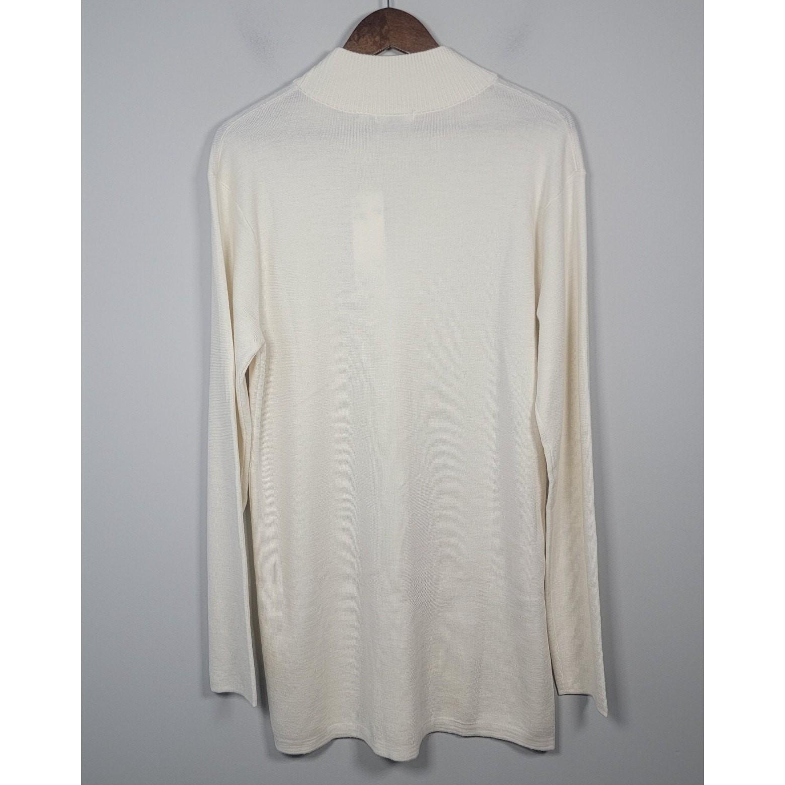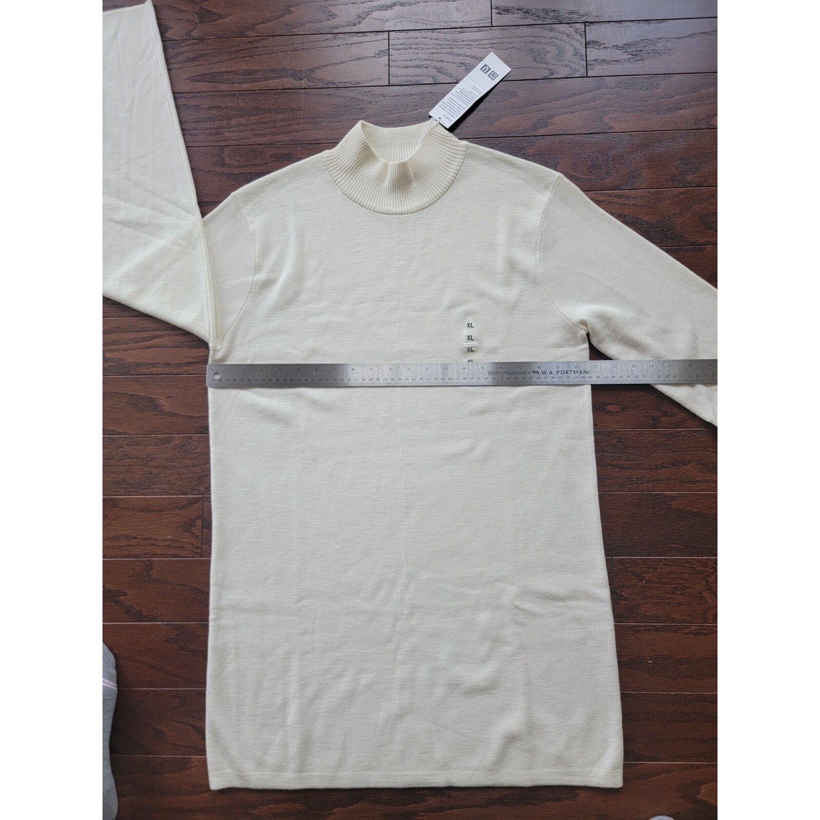 Uniqlo U women’s merino blend tunic sweater in size XL, designed under the direction of Christophe Lemaire. Crafted in a soft merino–nylon blend in an ivory cream tone with ribbed neck, cuffs, and hem. NWT condition. Brand new with tags. No holes, stains, or defects. Smoke-free, pet-friendly environment. Flat measurements (approximate): • Bust (pit to pit): 20 in (40 in around) • Length (shoulder to hem): 34 in • Sleeve length (shoulder to cuff): 26.5 in Colors may vary slightly due to lighting or screen settings. Please review all photos carefully. Ships via USPS same or next business day. Bundle available. Thanks for visiting!