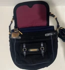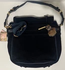 This is a brand new with tags Vintage Juicy Couture messenger bag. Includes a Large detachable adjustable crossbody strap as well as an adjustable shoulder strap handle. Included is a rare bag charm: A furry fox with rhinestone eyes, and a golden whistle charm on leather strap. Both whistle and fox charm are unused and in perfect condition. This is a wool type fabric, purse is on the heavier side. Great book bag or laptop bag for everyday use, school or work. MSRP 278.00 in the 2000’s Y2K era