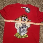 NWT Warner Brothers WB Looney Tunes TAZ Moneybags Red Cotton T-shirt Size Large -Medium weight cotton fabric -iron-on Taz graphic