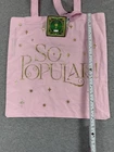The NWT Wicked Glinda Popular Pink & Gold Tote Shoulder Bag is a stylish and whimsical handbag featuring a cotton blend exterior with a pattern of stars, representing Glinda's character from the Wicked franchise. The pink handle/strap and gold hardware add a touch of glamour, while the pink canvas and cotton lining provide a cozy feel. This tote is perfect for women who love the Wicked theme and want to showcase their witchy side in a fashionable way.