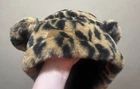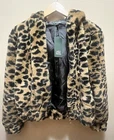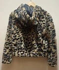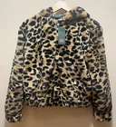 This is a Wild Fable women's leopard print faux fur bomber jacket in size XS. It features a hood with animal ears, made of polyester material with a polyester lining. The jacket has a zip-up closure and is designed with a fun and stylish leopard print pattern, perfect for adding a playful touch to any outfit.