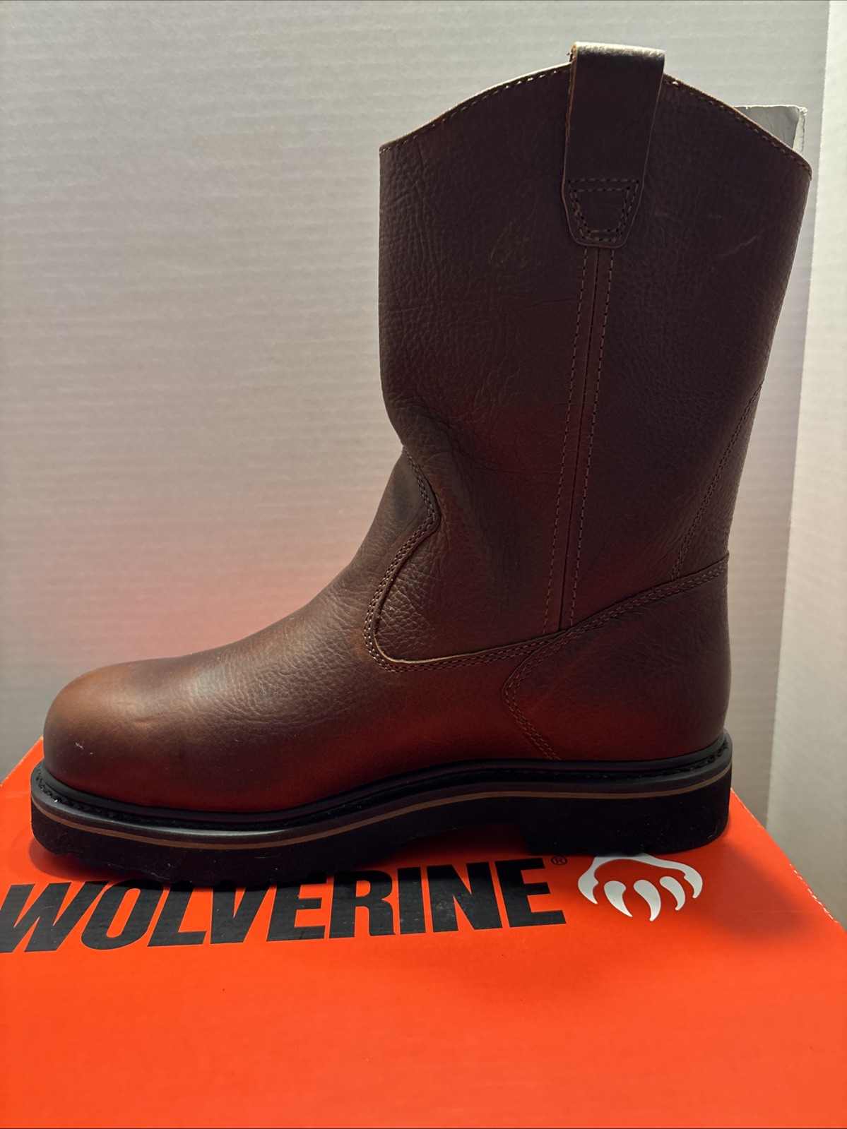 This Wolverine Wellington work boot is a must-have for any hardworking man. It features a steel toe and is made of durable leather that is resistant to oil. The slip-on closure makes it easy to put on and take off, and the round toe shape provides a comfortable fit. The boot comes in a classic dark brown color and has a Western style that is perfect for workwear. It is suitable for all seasons, including winter, summer, fall, and spring. The outsole material is also leather, and the shoe width is W. This boot is a great addition to any wardrobe, and it is sure to last a long time. Boots will be shipped in this original box. International charges are the buyer’s responsibility. No international returns.