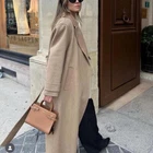 Wrap up warm and stay stylish with the Zara Double Face Wool Coat from the ZW Collection. Crafted from a premium wool blend, this overcoat is a versatile addition to your wardrobe, perfect for the chill of autumn and winter. The dark camel colour offers a classic, elegant look that pairs effortlessly with any outfit. The coat features a comfortable regular fit in size M with a smart camel lining that enhances its sophisticated appeal. Practicality meets fashion with this wool-insulated garment, ensuring you stay cosy without compromising on style. Whether you're out for a casual meeting or an official event, this Zara coat provides the perfect blend of warmth and class.