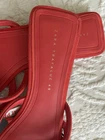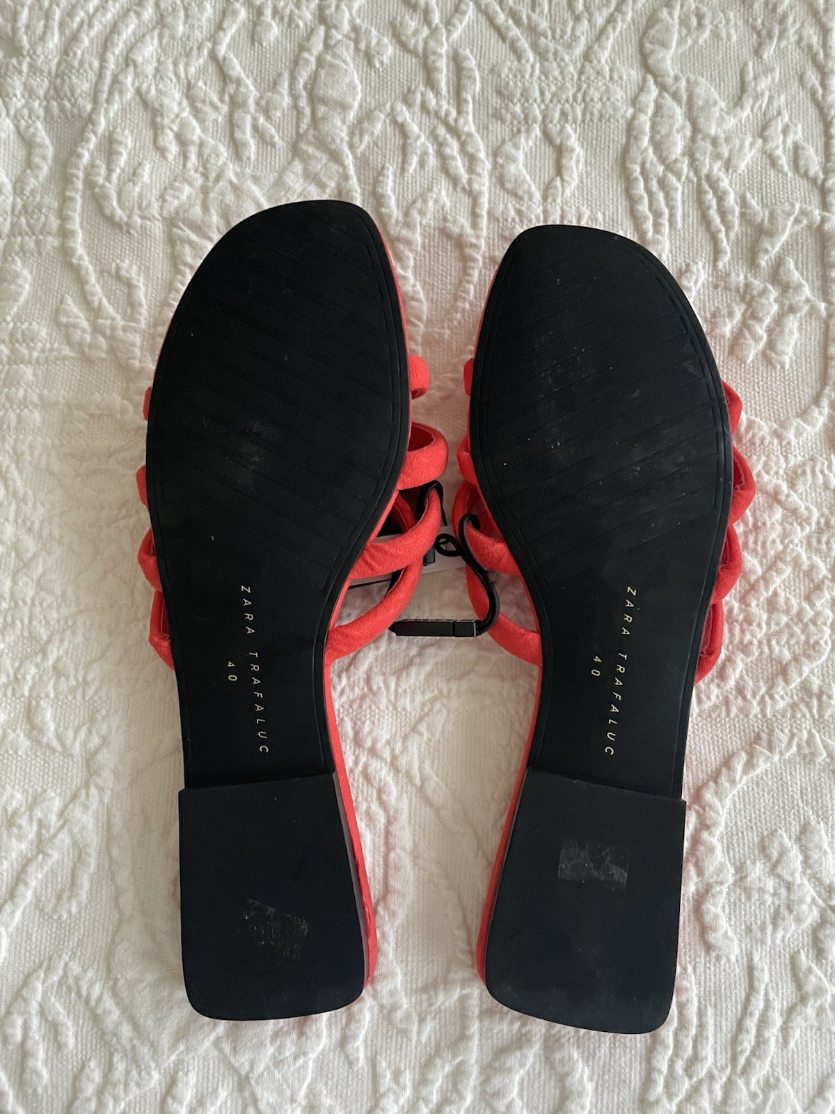 New Zara Trafaluc slip Ons. US size 9. EU size 40. Open toe. Orange red suede. Flat heels. New with tags.