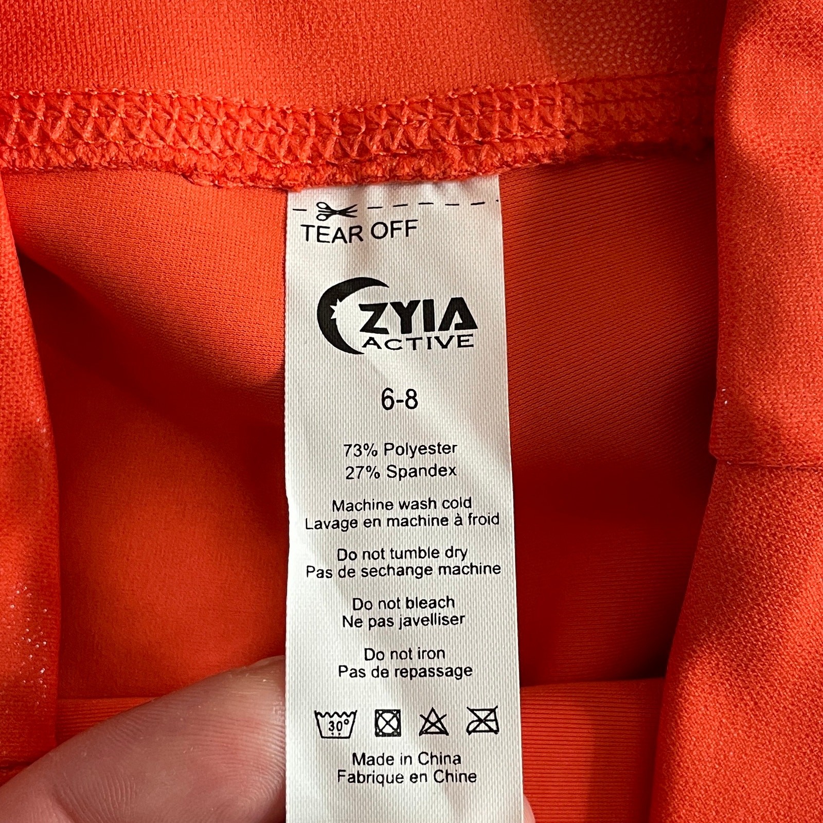Zyia Active Tangerine Metallic Plus Light N Tight High Rise 7/8 Leggings in Tangerine Orange Pink New with tags No visible flaws Size: 6-8 Color: Tangerine Metallic *Color may differ in photos due to lighting. High Rise Metallic coating 7/8 length Medium stretch No pockets Polyester/Spandex Machine Wash cold Measurements (laid flat across): Rise: 9.75" Inseam: 24" Waist (across): 14" Total Length: 31.5"