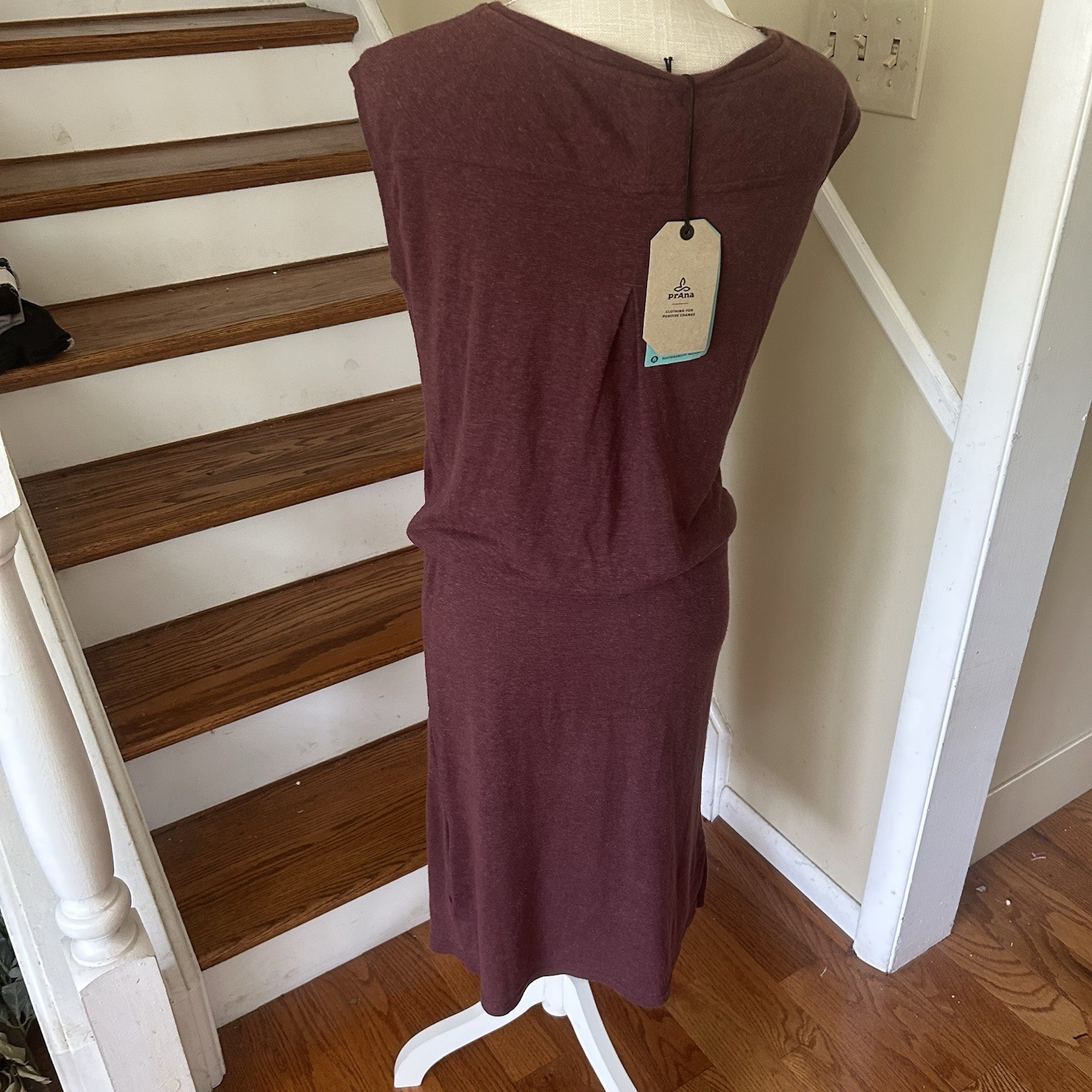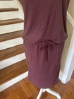 The color is called Raisin Heather close to maroon/purple. The overall length will be a little shorter when you tie at waist side slits and pocket Pit to Pit 17” Length 42”