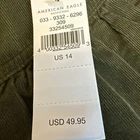 The American Eagle Super High Rise A-Line Corduroy Skirt in size 14 is a stylish and versatile addition to any wardrobe. This olive green skirt features a solid pattern with a button closure, crafted from comfortable corduroy fabric. The high rise and A-line silhouette offer a flattering fit, while the addition of pockets adds functionality to this fashionable piece. Perfect for casual or dressier occasions, this skirt from American Eagle Outfitters is a must-have for women looking for a chic and on-trend wardrobe staple.