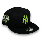NY Yankees 2000 World Series Adjustable 9FIFTY Snapback New Era Cap - Black - Neon Details - NWT Genuine New Era Hat supplied by authorized reseller Grey under brim. Adjustable, one size fits most. Cap adjusted second to the last clip (largest setting) measures approx. 7 5/8". If you wear fitted size larger than 7 5/8", these 'WILL NOT' fit you. All orders are shipped within 1 business day after receiving cleared payment. You will receive an e-mail with shipping/tracking information once your item has been shipped. All domestic orders are shipped FREE via USPS. Return Policy: 30 day return period starts once the merchandise has been received. Item(s) must be in its original condition with all tags and stickers intact. Item(s) can be tried on but not worn or washed. Buyer must ship the item(s) in its original package or in other secure shipping box. Feel free to send us a message if you have any questions.