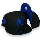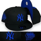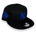 NY Yankees 9FIFTY 99WS Adjustable Snapback New Era Cap - Black - Blue - NWT Genuine New Era Hat supplied by authorized reseller Grey under brim. Adjustable, one size fits most. Cap adjusted second to the last clip (largest setting) measures approx. 7 5/8". If you wear fitted size larger than 7 5/8", these 'WILL NOT' fit you. All orders are shipped within 24 - 48hrs business day after receiving cleared payment. You will receive an e-mail with shipping/tracking information once your item has been shipped. All domestic orders are shipped FREE via USPS. Return Policy: 30 day return period starts once the merchandise has been received. Item(s) must be in its original condition with all tags and stickers intact. Item(s) can be tried on but not worn or washed. Buyer must ship the item(s) in its original package or in other secure shipping box. Feel free to send us a message if you have any questions.