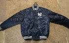 NY Yankees Athletic Jacket Blue Satin Bomber Style Varsity Jacket