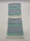 This rectangle scarf from New York & Company is a stylish addition to any women's wardrobe. The scarf features a triped pattern with blue, green, and brown stripes. The scarf is made of a blend of polyester, nylon, and 5% wool, making it soft and comfortable to wear. In addition to its stylish design, this scarf is also multifunctional. It can be worn in a variety of ways, such as a wrap, a scarf, or a shawl. The scarf also has crochet accents that add an extra touch of elegance. This scarf is a must-have accessory for any fashion-forward woman. Check pictures for flaws and measurements