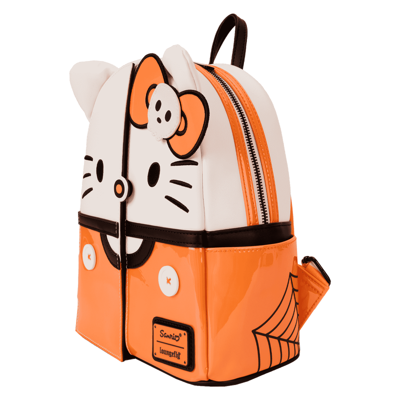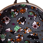 Prepare to be shocked – this mini backpack is so cute, it’s scary! Hello Kitty wears an iridescent outfit and coordinating bow to match the colors of the Halloween season. Open the bag’s hinged flaps to reveal her skeleton form, which glows in the dark when you turn out the lights! With adorably spooky artwork throughout its design, this accessory makes a frightfully perfect addition to any autumnal outfit. Features: A Loungefly NYCC exclusive! Vegan leather (polyurethane) Adjustable shoulder straps (printed) Hinged top flaps (front) Side drop pockets Matte black hardware Applique, embossed, embroidered, iridescent, button, glow-in-the-dark, and printed details Coordinating inside lining Dimensions: 9”W x 10.5”H x 4.5”D 22.9 cm W x 26.7 cm H x 11.4 cm D