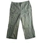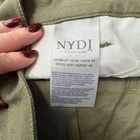 These NYDJ cropped wide-leg pants in a subtle olive hue offer both style and comfort. Crafted with Lift Tuck Technology, these pants provide a flattering fit that smooths and enhances your silhouette. The breathable cotton fabric ensures ease of movement, making them ideal for a leisurely day out or casual office wear. • Button & zip closure • Wide leg design • Cropped length • Two front pockets • Lift Tuck Technology • Versatile style Wrinkled fabric, no visible damage. Waist = 17 inches, Inseam = 24 inches