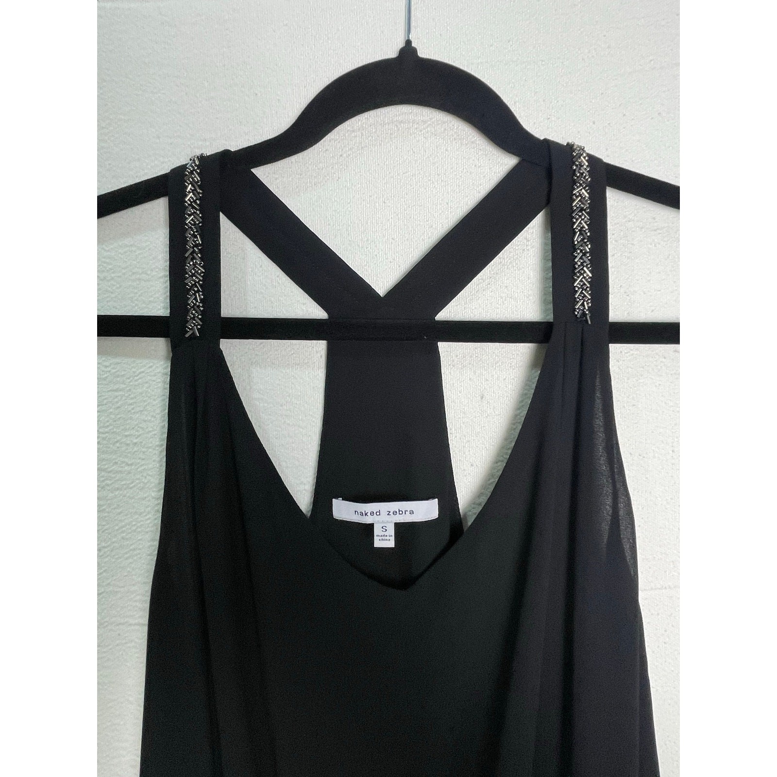 This Naked Zebra little black dress is the perfect blend of timeless style and modern flair. Tagged size Small. Condition: Excellent pre loved condition and carefully cared for. No signs of use or flaws Material: 100% Polyester Color: Black Size: Small Measurements: Approx. 18” pit-to-pit, 12” across the waist unstretched, 17” across the waist fully stretched, and 35” in length from shoulder to hem. Featuring beaded racerback straps and a flattering cinched elastic waist, it creates a flowy silhouette that is perfect for date nights, cocktail parties, or any special event. The lightweight chiffon overlay adds graceful movement. Shipped same day from a smoke and pet free home if purchased before 4pm PST! Offers welcome! :) Little black dress, Naked Zebra dress, racerback dress, beaded strap dress, cocktail party dress, women’s size small, chiffon LBD, formal black mini dress