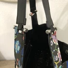 The Nanette Lepore Athena Damask Floral Tote Shoulder bag is a large, multicolor shoulder bag with a beautiful floral pattern. Made with vegan leather, this bag features a snap closure, black shoulder strap, and a lined interior. Perfect for travel, casual outings, or workwear, this stylish bag is a designer piece that adds a colorful and trendy touch to any outfit. The bag is part of the Shoulder Bags product line and is designed for women who appreciate both fashion and functionality.