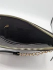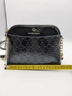 Chic and versatile, this Nanette Lepore black crossbody bag features an adjustable strap with gold chain accents, front and back slip pockets, and a secure zipper closure. The interior includes a main compartment, a slip pocket, and a zipper pocket for organization. Pre-owned but unused, it shows a mark/wear on the strap from storage. Measures approximately 8" wide by 6" tall. CB Treasures ships same day / next day! This item comes from a smoke-free and dog-free environment. Our items are carefully packed to guarantee their safe arrival to you.