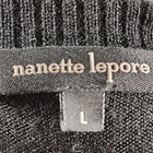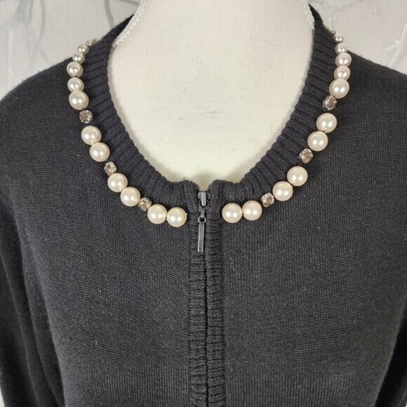 Nanette Lepore Black Wool Pearl Embellished Full Zip Cardigan style tags: preppy, business casual, cozy, natural fibers, feminine, fitted Women's L Chest: 19" Length: 22" Good Used Condition: no rips, marks or stains